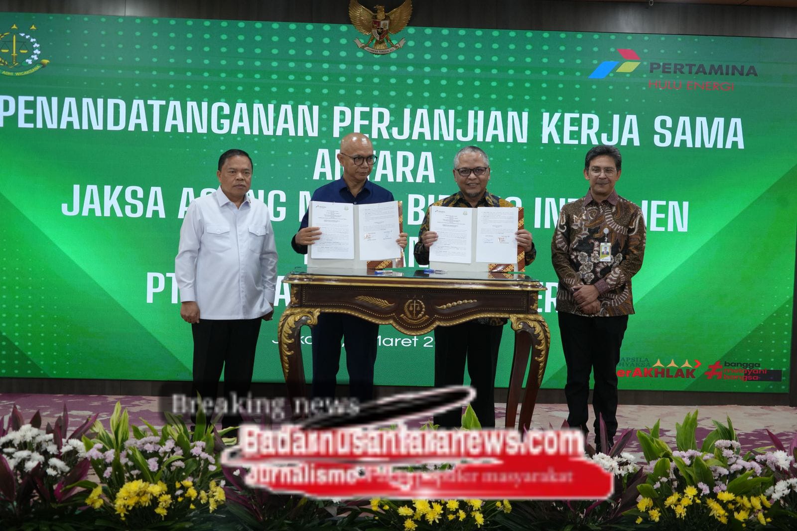 badarnusntaranews.com|| Jakarta,- Jaksa Agung Muda Intelijen (Jamintel) dan PT Pertamina Hulu Energi (PHE) menandatangani Perjanjian Kerja Sama (PKS) untuk meningkatkan sinergitas dan tata kelola migas di Indonesia.senin 9 Maret 2026.