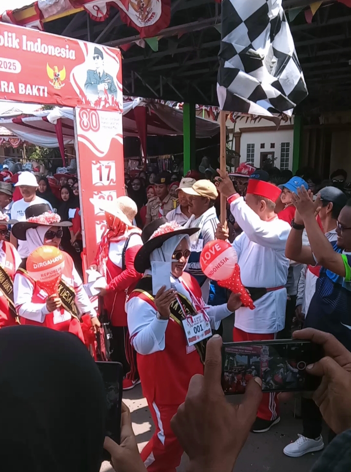 badarnusantaranews.com||Kab.Bekasi,-Kepala Desa Muara Bakti H.Asmawi dan hj Islonih Ketua PPK Muara Bakti dan secara resmi membuka kegiatan gerak jalan santai di halaman Kantor Desa Muara Bakti pada Minggu (17/8/2025), usai mengikuti upacara bendera HUT RI ke-80. Pembukaan ditandai dengan pengguntingan pita sebagai simbol dimulainya acara yang disambut meriah oleh warga.